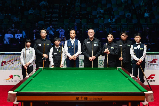「桌球皇帝」亨特利(Stephen Hendry)與傅家俊,各帶領3名香港桌球學院學員,進行表演賽互相比拼。